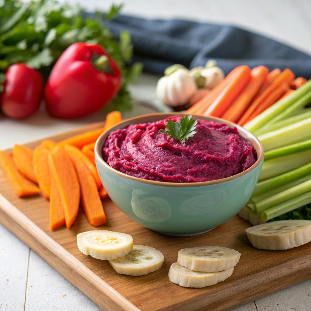Looking for a unique appetizer that will wow your guests? This vibrant beet hummus is not just a feast for the eyes but also a delicious and healthy choice for your next gathering. Paired with fresh crudités, it’s the perfect snack to serve at parties or enjoy on a quiet evening. With a blend of earthy beets and creamy tahini, this dip has a delightful balance of flavors.